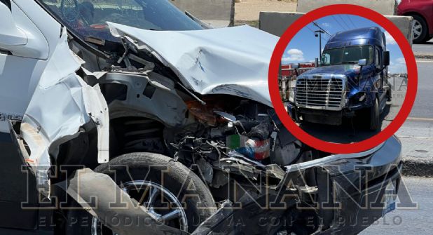 Una mujer y un menor terminaron lesionados tras el choque de la camioneta en que viajaban contra un tráiler, cuyo chofer se les atravesó en el camino, frente a Colinas del Sur.