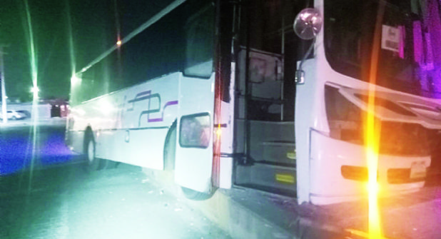 El autobús de una empresa dedicada al transporte de personal fue abandonado por quien lo conducía, luego de chocar y derribar un poste de alumbrado público en el Bulevar Rea.