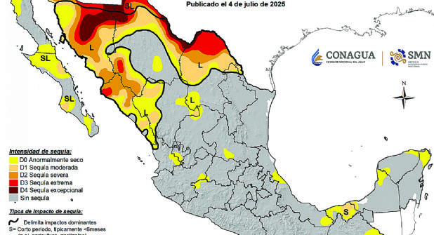Durante tres meses continuos, el monitor de sequía de la Comisión Nacional de Agua mantuvo a Nuevo Laredo en una sequía extrema/moderada durante marzo y abril, en mayo pasó a severa hasta finales de mes, para pasar a moderada.