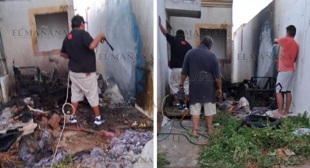 Con mangueras, vecinos de la colonia Valles del Paraíso apagaron el incendio de una vivienda abandonada mientras esperaban la llegada de los bomberos.