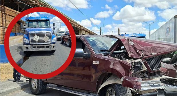 Al cambiar de carril sin precaución, el chofer de un tractocamión embistió por alcance una camioneta, que tras el brutal encontronazo, se fue directo contra la caja de un segundo tráiler que estaba enfrente, en la Carretera Aeropuerto.