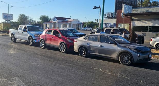 Por una probable falla mecánica en su camioneta, un hombre provocó un accidente en el Bulevar Colosio, en la fila del Puente Internacional 2, causando daños en dos vehículos.