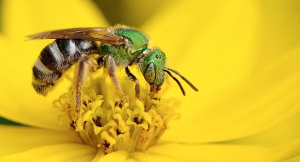 La abeja verde del sudor (Agapostemon texanus), de brillo metálico y tamaño reducido que oscila entre los 7 y 15 milímetros, es un visitante frecuente de zonas urbanas, jardines y campos agrícolas en la frontera de los Dos Laredos.