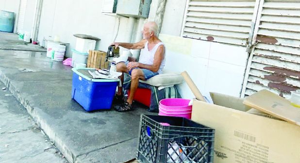 Eulalio es una de las personas sin hogar que deambulan diariamente las calles del centro histórico de la ciudad, sin rumbo fijo, se detiene por instantes en las plazas, bajo la sombra de los árboles y techado de algunos negocios; además de buscar restos de comida en contenedores de basura y en algunas ocasiones personas le comparten alimento.