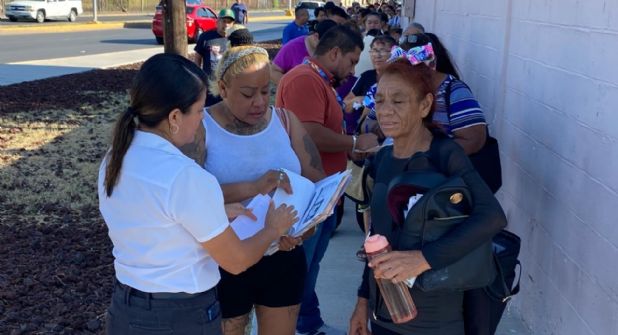 Cientos de neolaredenses hicieron fila ayer en la Antigua Aduana, ubicada en el primer cuadro de la ciudad, para inscribirse al programa de pensión Mujeres Bienestar, de 60 a 64 años de edad.