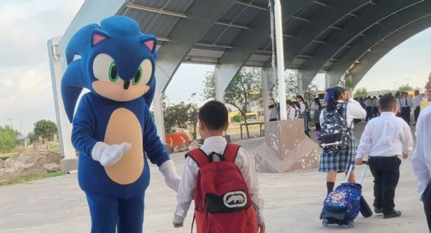 Pero la manera que más sorprendió a los menores tanto de su grupo, como de todo el alumnado es que desde muy temprano los recibió luciendo una botarga de Sonic en la entrada de la escuela, dando la bienvenida, saludando de mano a cada uno de ellos que se acercaron para ver a su personaje favorito.