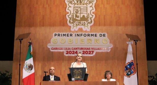 La alcaldesa Carmen Lilia Canturosas Villarreal rindió su Primer Informe de Gobierno del periodo 2024-2027 en el que destacó la consolidación de Nuevo Laredo como referente nacional en desarrollo municipal, servicios públicos de calidad, infraestructura estratégica y prosperidad compartida para todas las familias neolaredenses.