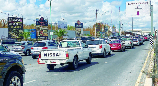 Se recomienda salir con tiempo si su intención es cruzar a Laredo, Texas, pues las filas llegaban hasta los semáforos de la calle Hidalgo, por el Bulevar Luis Donaldo Colosio.