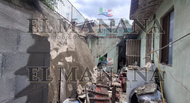 Personal de bomberos llegó al domicilio mencionado, observando que la propietaria de la casa estaba sana y salva, tratando de remover la placa de cemento que quedó recargada sobre otra pared.
