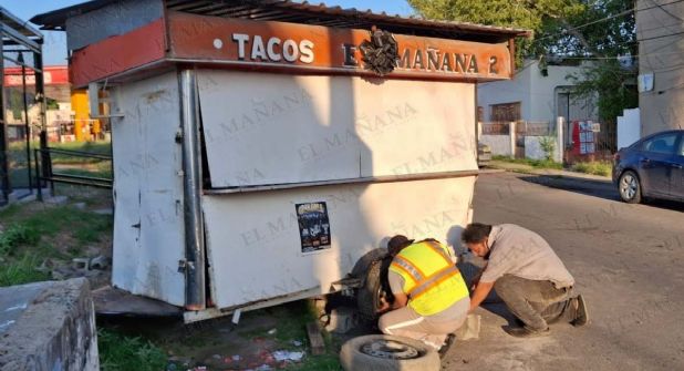 Cafre del volante se llevó de encuentro el puesto de los populares Tacos “El Mañana”, ubicado en el crucero de Guatemala y la avenida Ocampo de la colonia Juárez de Nuevo Laredo.