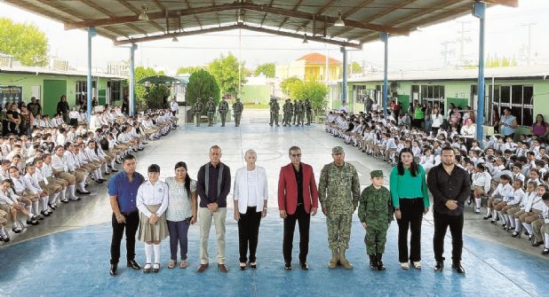 En la ceremonia, estuvieron presentes autoridades educativas encabezadas por César Bolaños Hernández, titular del Crede de Nuevo Laredo; María Luisa Fernández de Jáuregui, jefa del Sector 1 de Primarias e invitados especiales como los alumnos Alexa Naomi Araujo Rocha y Kenneth Alexander Lazo Olivas, quien recientemente fue nombrado “Soldado por un día”, por las fuerzas castrenses del XXIX Regimiento de Caballería motorizada en Nuevo Laredo.