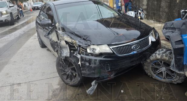 Una falla en el sistema de frenos de su carro, el conductor de un Kia Forte 203, no pudo pararse y va a estamparse contra una camioneta GMC Sierra, dos motonetas y un RZR que estaban debidamente estacionados.