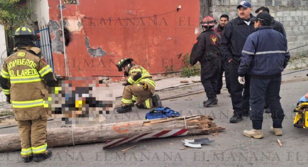 El incidente se registró la mañana del domingo frente a la casa número 4959 de la calle Bolívar, casi esquina con Amado Nervo, en la colonia Matamoros de Nuevo Laredo, lugar donde horas antes un cafre chocó contra el poste de los cables de alta tensión, dejándolo derribado y regando el cableado, para después darse a la fuga.