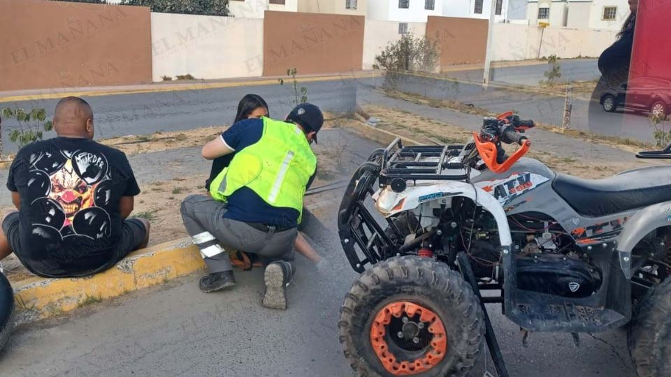 Óscar y Yaneth, de 36 y 14 años, viajaban en una potente cuatrimoto, informándose que circulaban por el Bulevar Revolución y, a la altura de la colonia mencionada, el conductor perdió el control y el vehículo derrapó y se volteó en uno de sus costados.