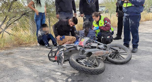 Una madre y su hijo resultaron lesionados mientras transitaban en una moto, luego de que el padre no guardó la distancia adecuada y se impactó e lleno contra la parte trasera de un tráiler.