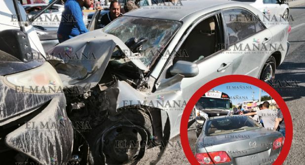 De acuerdo a los primeros reportes, el conductor del auto Mazda 6 modelo 2000 perdió el control, brincó el camellón y terminó impactándose brutalmente con la unidad de transporte de personal de la empresa INNSA.