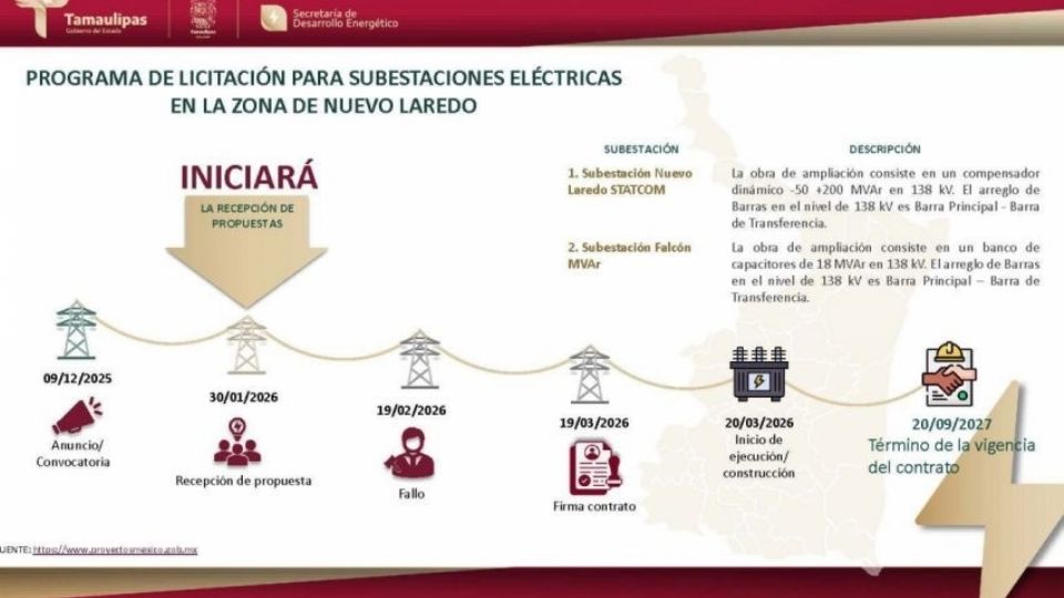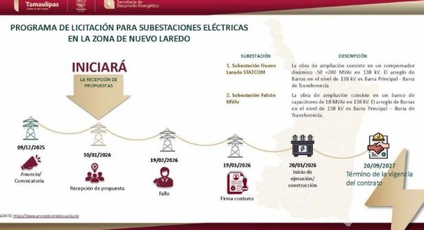 La Comisión Federal de Electricidad (CFE) iniciará un proceso de licitación para fortalecer la infraestructura eléctrica en Nuevo Laredo, como parte del Programa de Obras 2026, con el objetivo de garantizar un suministro estable y de calidad ante el aumento de la demanda industrial y residencial en esta ciudad fronteriza.