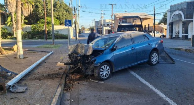 Oficiales de la Dirección de Tránsito y Vialidad llegaron al lugar del accidente, encontrando el carro Toyota Corolla destrozado de la parte frontal y sobre la banqueta estaban dos postes derribados, uno de madera y otro de alumbrado público.