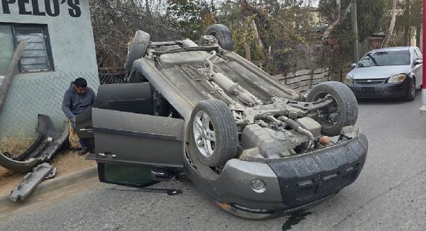 Un joven conductor protagonizó un violento choque que terminó en volcadura la mañana del domingo, dejando cuantiosos daños materiales.