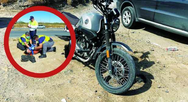 Al sufrir un mareo a bordo de su motocicleta, un hombre derrapó en una curva sobre el Bulevar Municipio Libre, detrás de la colonia Santa Elena, resultando herido, aunque no de gravedad.