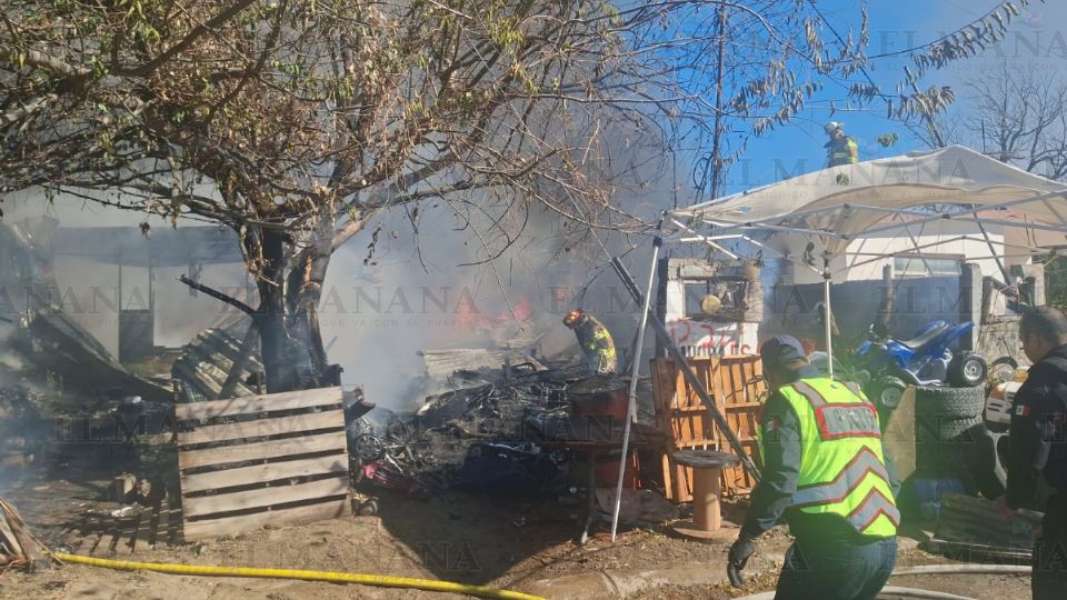 Personal del cuerpo de bomberos acudió a apagar las llamas del incendio. No se sabe si había gente o no; era un terreno donde almacenaban carritos de renta para los niños que juegan en el parque. La pérdida fue total