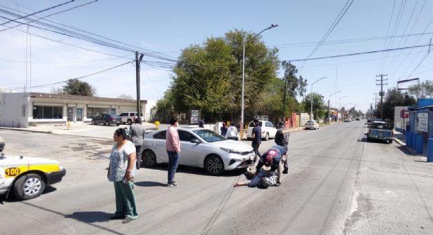Un motociclista resultó lesionado tras derrapar y estrellarse contra un automóvil, cuyo chofer invadió la vía de preferencia, en calles de la colonia Hidalgo.