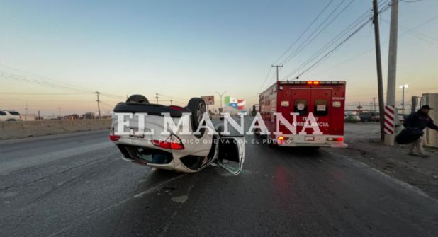 El conductor de una camioneta sufrió golpes menores luego de que volcó en la Carretera Aeropuerto tras perder el control al tomar una curva a exceso de velocidad.