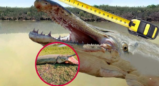 Las imágenes no mienten. El animal es una verdadera bestia del río: el ejemplar es tan grande que se necesitaron dos personas para manipularlo y un tronco para mantener su mandíbula, llena de dientes, abierta. Su cuerpo acorazado nos recuerdan por qué es considerado el rey de los caudales en el noreste de México.
