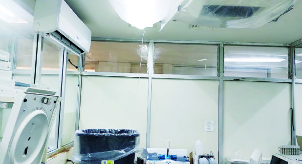 Las filtraciones se presentan en diversas áreas, entre ellas consulta externa, zonas de encamados, laboratorio y pasillos, a pesar de que el techo ha sido impermeabilizado en múltiples ocasiones, lo que pone en evidencia la mala calidad de los trabajos realizados y las condiciones deficientes en las que se encuentra.