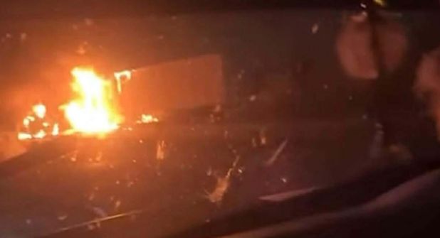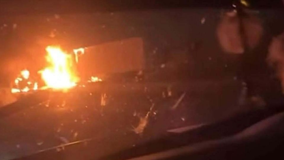 Información preliminar señala que dos unidades de transporte pesado se impactaron y salieron del camino, provocando que uno de los tractocamiones se incendiara poco después del choque.