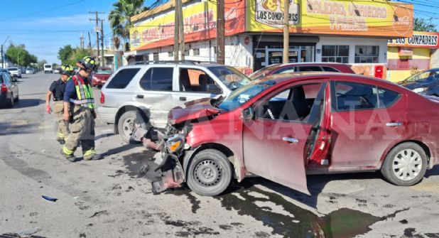 Fuerte accidente vial se registró el lunes por la tarde en el crucero de Pedro Pérez Ibarra y la avenida Tecnológico, en la colonia Infonavit, dejando como saldo a una mujer lesionada, con posible fractura en un brazo.
