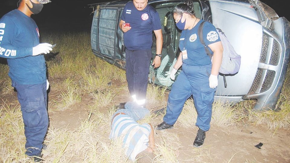 Paramédicos de Protección Civil informaron que el hombre al parecer salió disparado del vehículo, ya que estaba tirado a un costado de la camioneta que conducía, siendo revisado en for-ma inmediata.