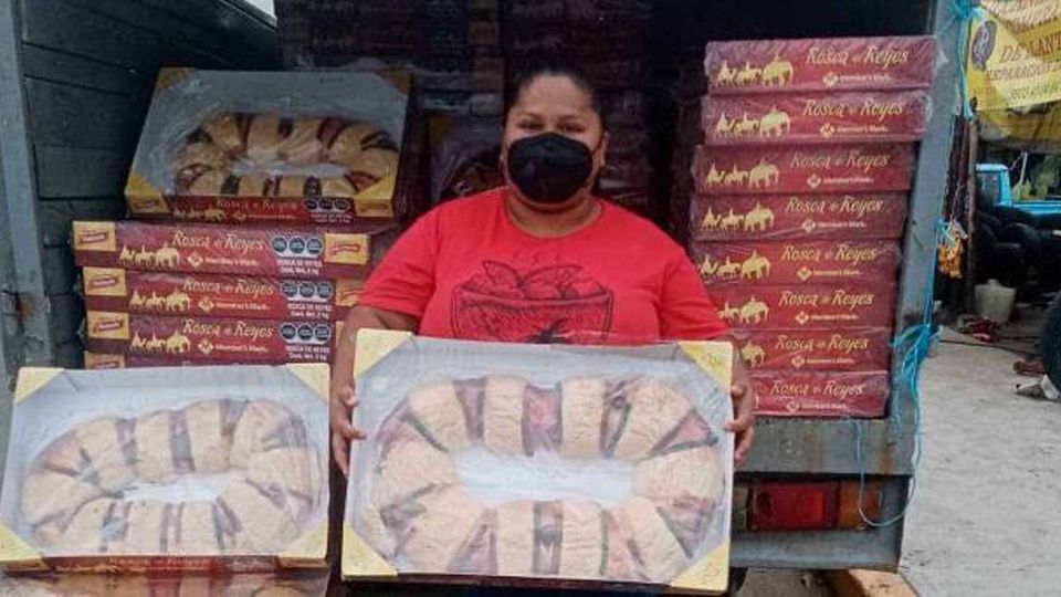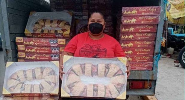 Sayra De la Cruz originaria de Villahermosa Tabasco, es la mujer que aparece en fotografías con cerca de 300 roscas para revenderlas.