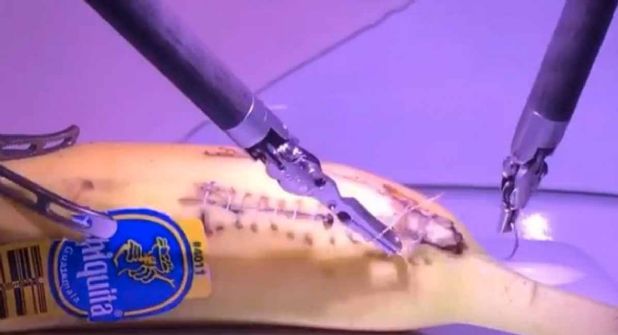 Una de las grabaciones que causó revuelo en plataformas como TikTok e Instagram fue la que muestra al doctor Rona, establecido en ese momento en Londres, Reino Unido, operando a un plátano ubicado en California, Estados Unidos, es decir, a 8 mil kilómetros de distancia.