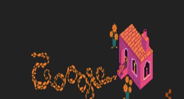 La nueva y temporal apariencia de las letras de google se tornaron color cempasúchil, donde una mujer tira los pétalos de estas flores afuera de su casa, formando con ellas la palabra Google.