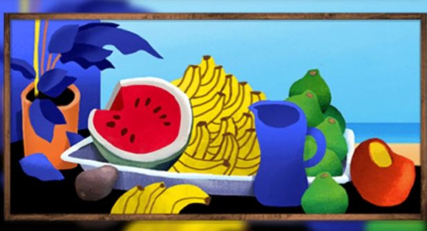 Con una colorida imagen donde se perciben frutas, flores y una playa de fondo, el buscador más importante recuerda los trazos y el estilo de la artista en este día.