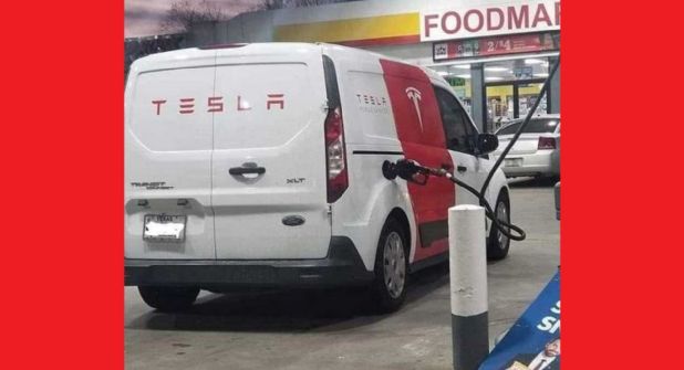 Una foto de un vehículo de Tesla cargando gasolina en una estación fue subida a las redes sociales y rápidamente se viralizó.