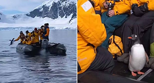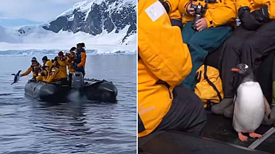 Uno de los turistas que viajaba en uno de los botes fue el que grabó el video que se publicó originalmente en YouTube. En las imágenes se observa que el pingüino saltar hacia la lancha, falla y se va directo al océano.